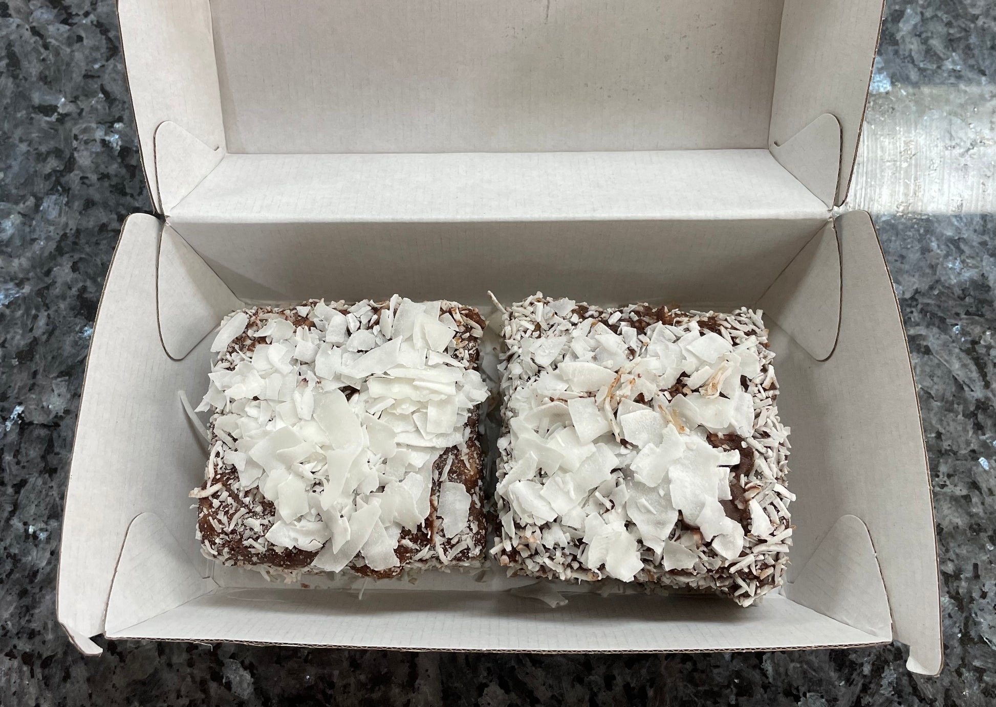 Slowbreads have put a new twist in this old favourite. First we made the lightest sponge then sprinkled it with raspberries and then poured panna cotta all over it. After setting overnight we made up a stunning Callebaut dark chocolate ganache and dipped the sponge before rolling in three types of coconut. The result?? You be the judge.